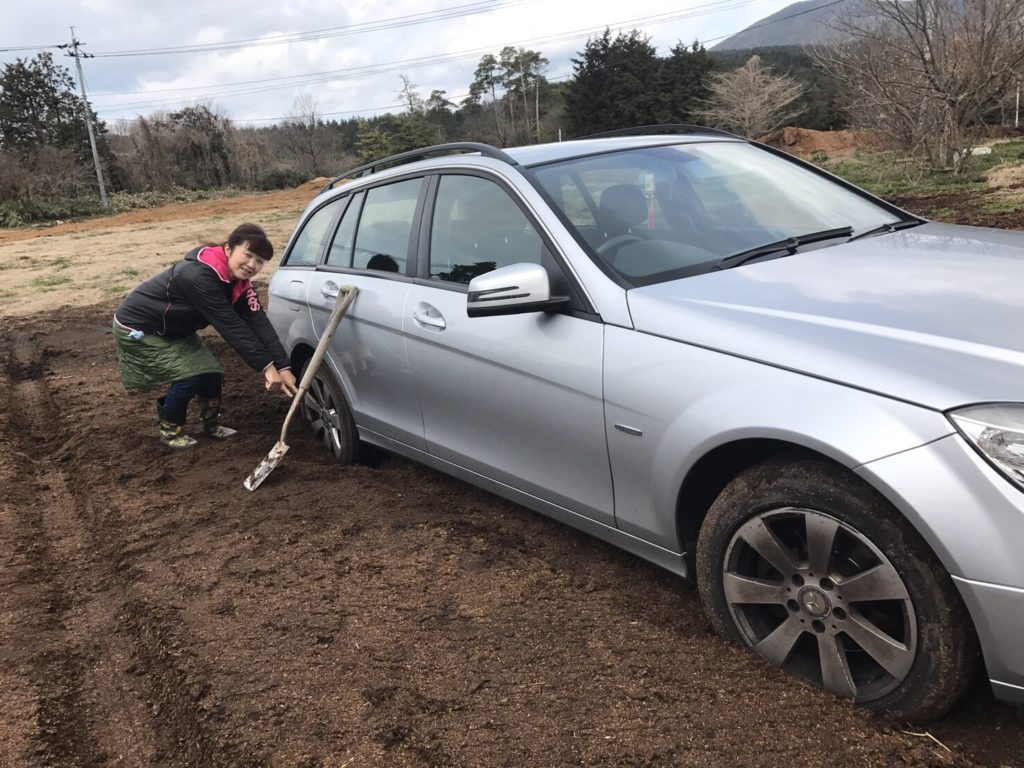 今日はYさんと一緒に大山乗馬センターに馬糞をもらいに行きました。薔薇のために、、。少しでも古く発酵した馬糞を求め、馬糞置き場の奥にゆる〜い坂を下り車でGO。袋に詰め込み、さあ、帰りましょう!行きはよいよい帰りは、、、、アッ!車が動かない!馬糞にはまった!!アクセル踏むたびタイヤが埋まっていきます。押しても重たい車はびくともしません。家族に色々迷惑をかけました、、。JAFを呼んで、1時間待ちました。やっと脱出!馬糞でフカフカになった道を甘くみてました。トランクに沢山馬糞をつめて、よかったよかった!皆さん、お世話になりました!