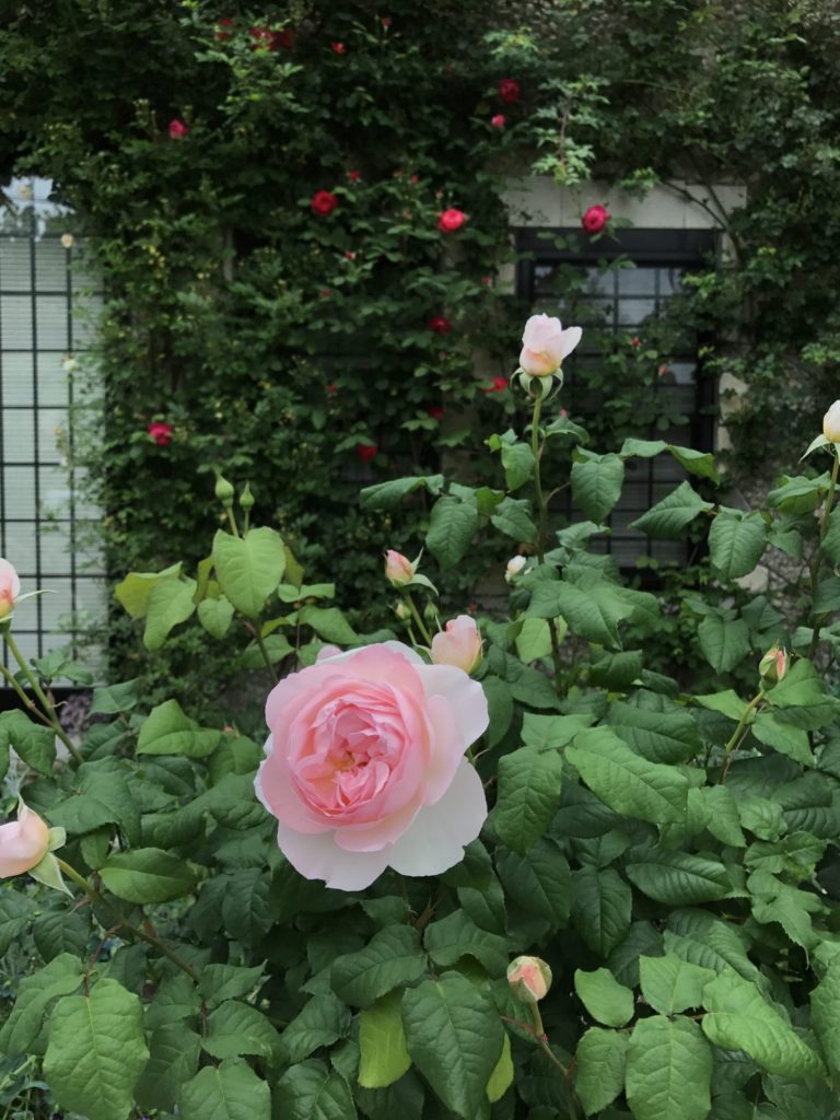 今日のクリニックです。シャリファアスマ、ボレロ、咲き始めました。曇り空に花の色が綺麗です。とても香りが良い薔薇です。壁には、ギスレースドゥフェリゴンド、ベンジャミンブリテン、デビュタント、ロサガリガオフィシナリスがいつ咲こうかと、準備しています!クレマチスも花を添えています。今年はどんな感じになるのかワクワクします!オールドローズがあると、庭が優しくエレガントな感じになるような気がします!