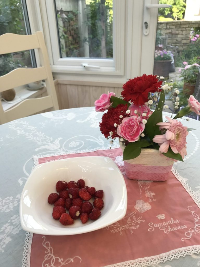 今朝は、早起きしてクリニックに液肥を撒きに行きました。朝の庭は最高です!花達の素敵な香り、色、ずっといたい気持ちになります。クリニックには、ワイルドストロベリーがあちこちに植えてあり、水撒きや、手入れのあと食べたりします。オーガニックなので安心です。今朝は沢山採れたので、庭で少し食べ、もって帰ってジャムにして、ヨーグルトに入れて食べました。ワイルドストロベリーのジャムはとても美味しいですよ!!ブルーベリーも今年は肥料をまいたせいか、沢山実がついてます。ジューンベリーも、もうじき赤い実を沢山つけます。これは、ほとんど、鳥がたべますが、、、