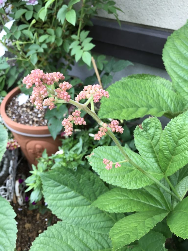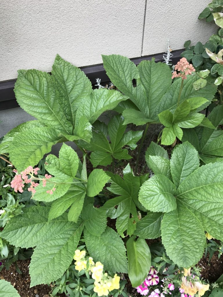 これも矢車草だそうです、葉っぱが矢車みたいだから、、。真ん中の葉っぱが少し大きくなったので切りました。花がさいています。