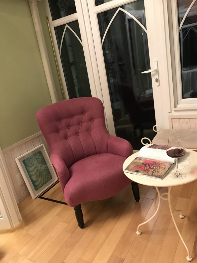 雨の日は、夜の水撒きもないので、雨音を聞きながらローズ色の椅子に座って、のんびり気分です。ワインは🍷大好きなので、ヌーボーを沢山買い込んで毎日少しずつのんでます。今夜は雨の音楽会なので、息子に買ってもらったバカラのワイングラスでリッチに、、。