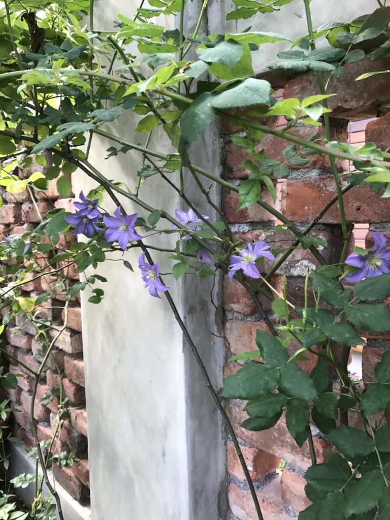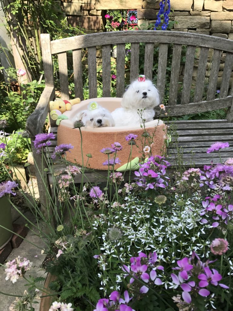 我が家の2匹のマルチーズのクララとシェリーメイです。2匹とも散歩がキライですが、外には出たいので、今日は気持ち良い天気だったので、私が植え替えする間、ひなたぼっこです。薔薇はもうおわってますがクレマチスのチャールズが綺麗でした。