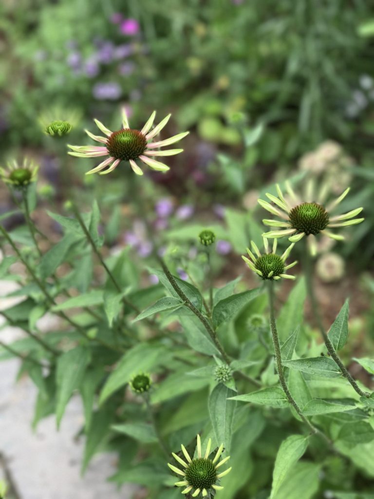 夏が近づき、エキナセアの季節になりました。エキナセアも色々あります。クリニックには、ミルクセーキと言うのや、ふつーの一重、八重のピンポン玉みたいなのや、グリーン、そして、グリーンとピンクの混ざったようなのや、、、私もどんなのを植えたのか覚えていません。ラブリーさんにあった珍しいのが植えてあります。