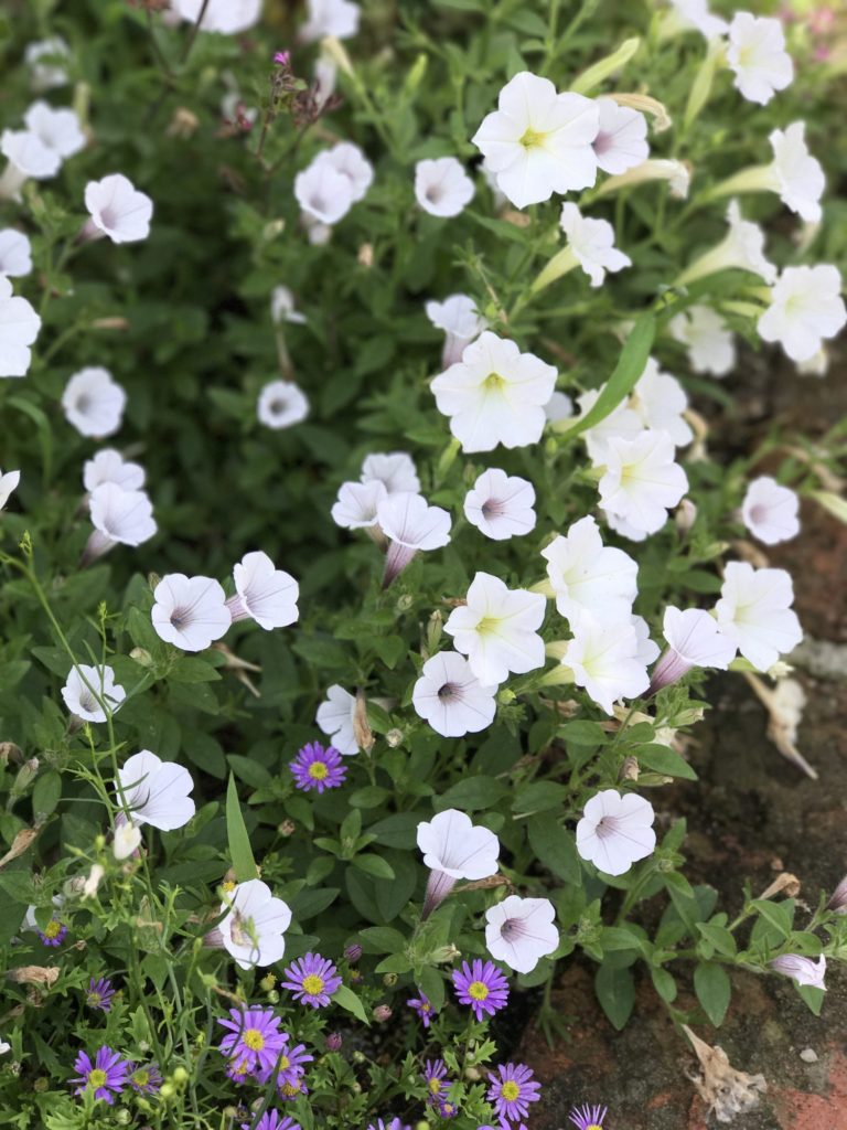 朝からとても暑く、水撒きするのがやっとです。毎年夏はこんなんかなあと思いながら、庭にでます。昼間は家から出られません。暑いのに、花🌸たちは綺麗に咲いてくれてます。白のペチュニアの花の大きさが違うのを植えてみました。可愛い感じにさきました。いい感じのグラデーションになりました!