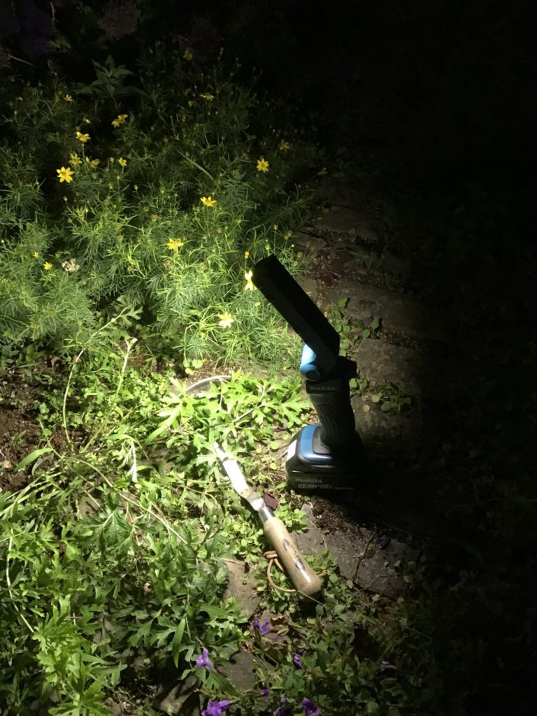 毎日暑い😵日です!昼間は暑く、それでも、日陰の草抜きしたり、、まるでサウナに入ったように汗だくです!💦隊長さんが便利なライト持っておられたので、私も買ってもらいました。LEDなので、虫も来なく、とても明るいので、夜でも庭の手入れができます。日が沈んでも、やはり暑い、、、。