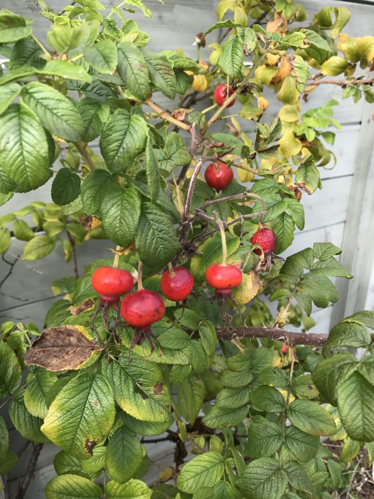 ロズレ ドゥ ライのローズヒップです。花も大きいですが、ローズヒップも大きかったです。真っ赤でまるでプチトマト🍅みたいです。