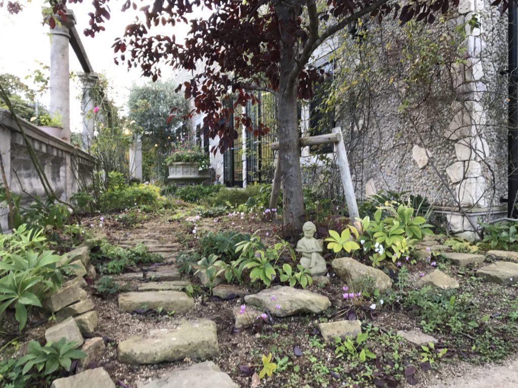 草抜きから、やっと解放されました。秋らしく、静かな庭になりました。原種シクラメンが可愛らしく咲いています。