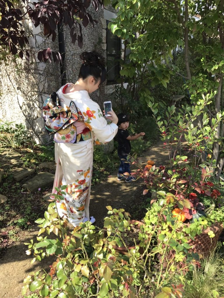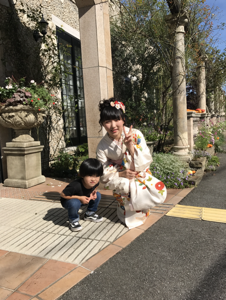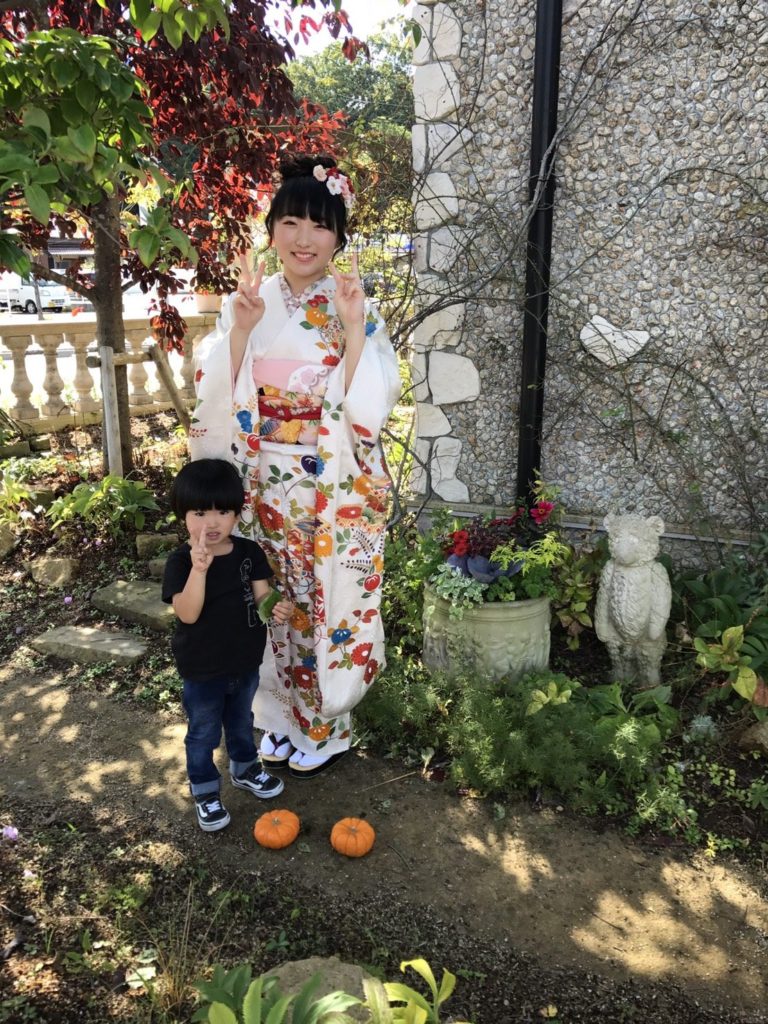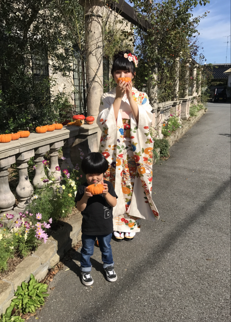 今日は、娘が去年までお稽古していた日本舞踊の25周年記念祝賀会でした。着物を着ていきました。クリニックの庭ではじめちゃんと写真パチリ!はじめちゃんは、もうじき紐落としなので、写真パチリの練習です。ハロウィン🎃気分も、、。寄せ植えも秋らしくていい雰囲気に撮れました!