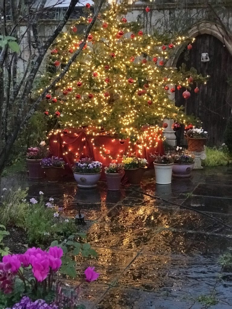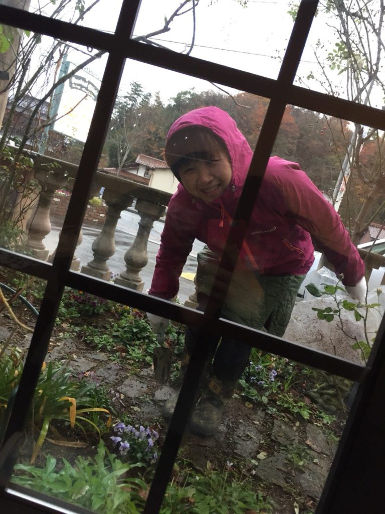 今日は晴れたり、雨が降ったり、それでもクリニックの植え替えを、隊長さん、ひかりんさんと頑張りました。ウインドブレーカーを着て、帽子を被り、カイロを貼って。庭人さん、ギザギザのビオラをメインに自然な感じにしてみました。お友達に出会い、娘さんが待合室から笑いながらパチリ!すぐ暗くなるので、気づいたらもみの木のツリーが、雨に打たれ、濡れた地面に映って綺麗でした!雨にも負けず庭仕事していてよかった。おかげで、素敵なシーンを見る事が出来ました。