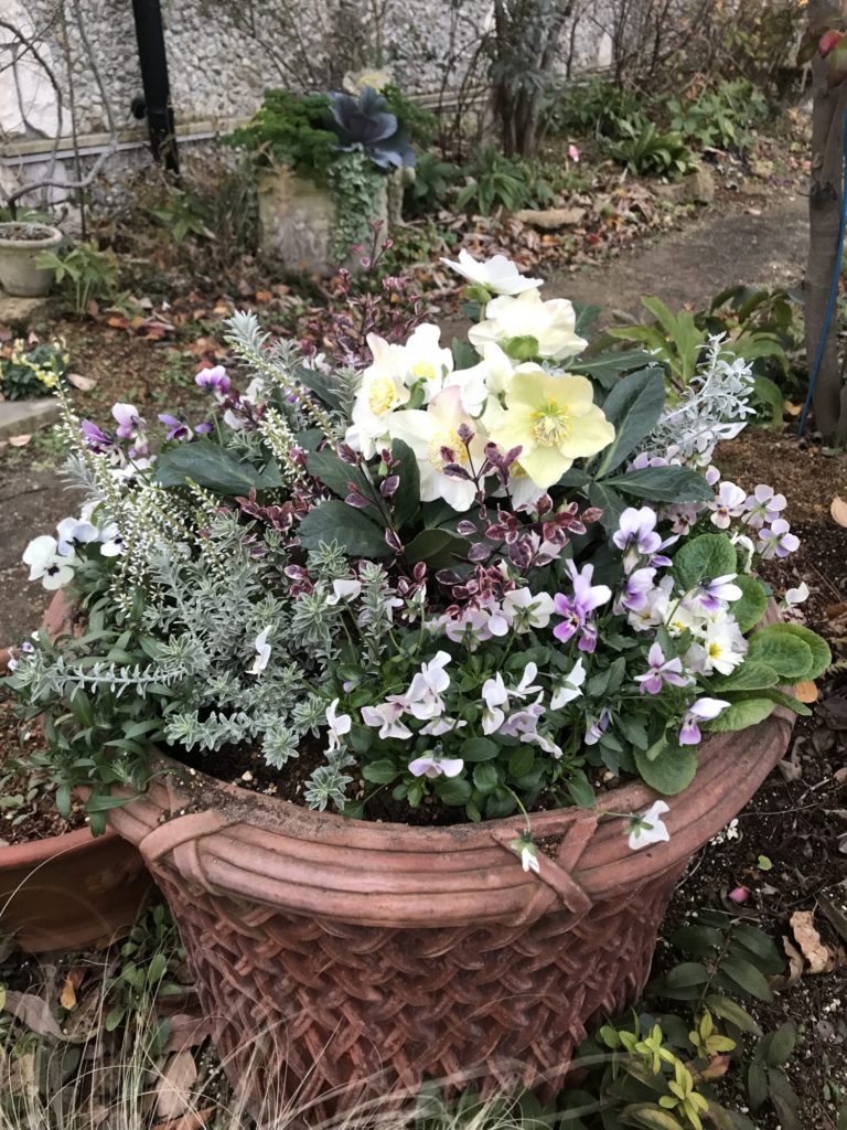 ニゲルが綺麗だったので隊長さんに寄せ植えにしてもらいました。冬らしく綺麗です。庭のクリスマスローズも早咲きのは蕾が見えてます。冬が来るんだなあと、、、