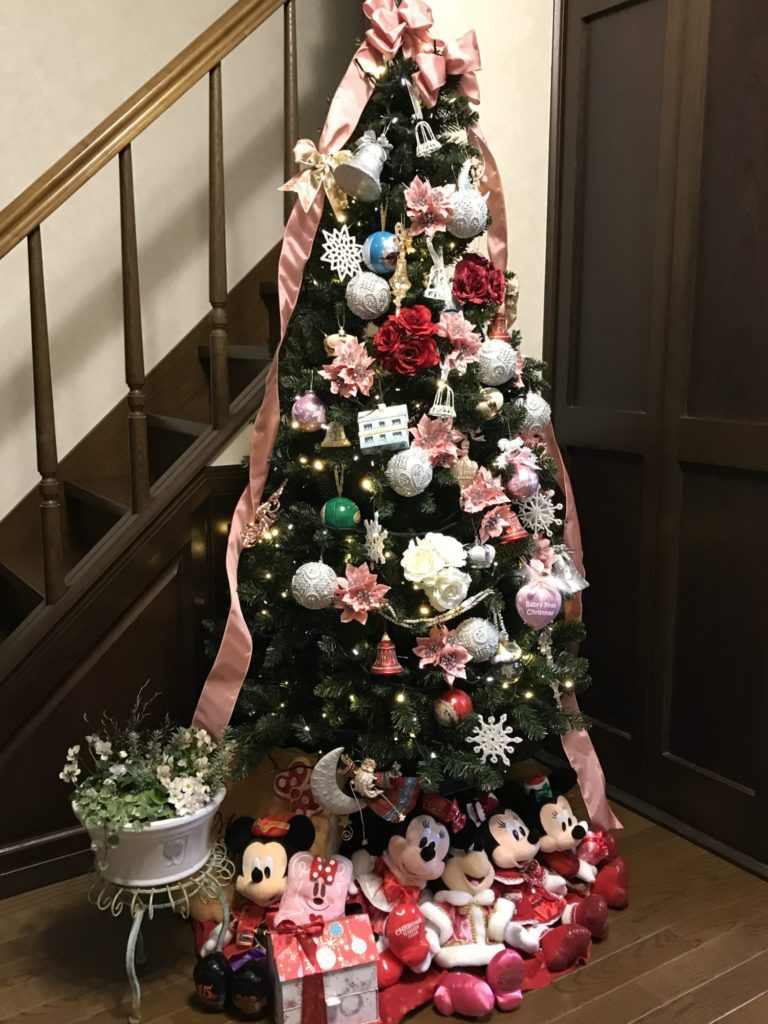 ディズニーランドのツリー🌲の下でパチリ!の写真です。流行りの三世代ディズニーでした。