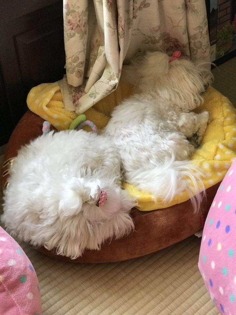 二匹のマルチーズも身体をくっつけてお昼寝です!