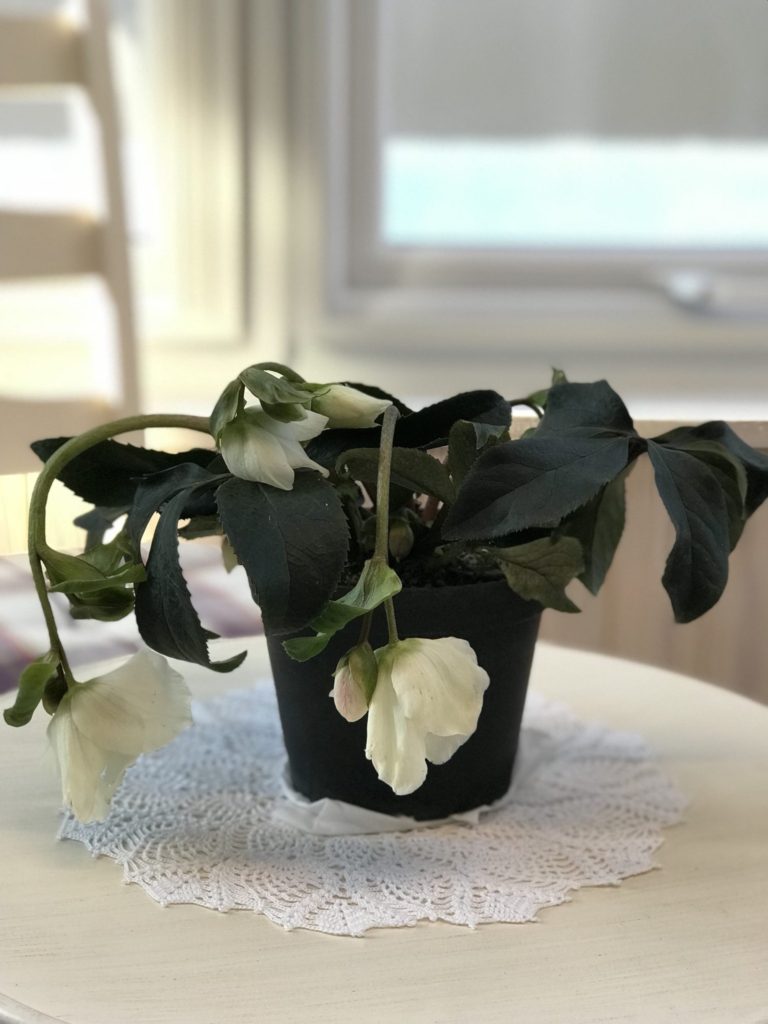 毎日のマイナスの気温にぐったりしたクリスマスローズ。買ったばかりだったのに、、。可哀想で、コンサバトリーに避難しました。元気になるかな?