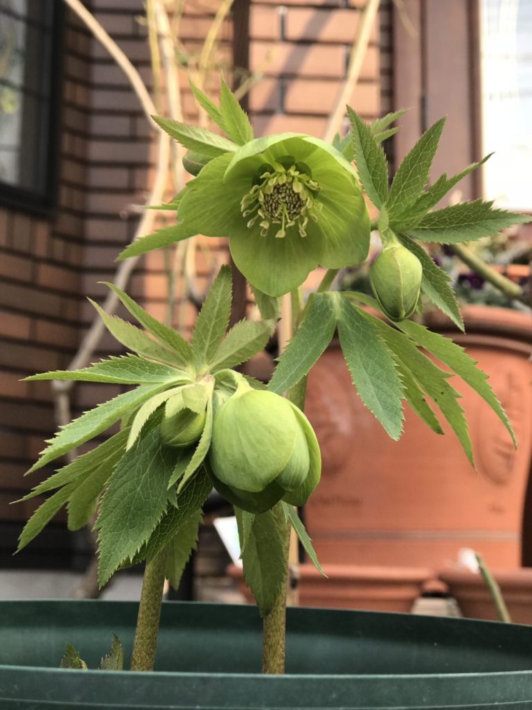 こちらは、植えて3年めの原種クリスマスローズです。寒さに耐えて冬越しした株なので、先日の雪や冷え込みにも負けず、雪が溶けたらすぐに元気になります!びっくりです!華やかなクリスマスローズも綺麗ですが、原種系も清楚な感じが素敵です。とても凛とした感じです。