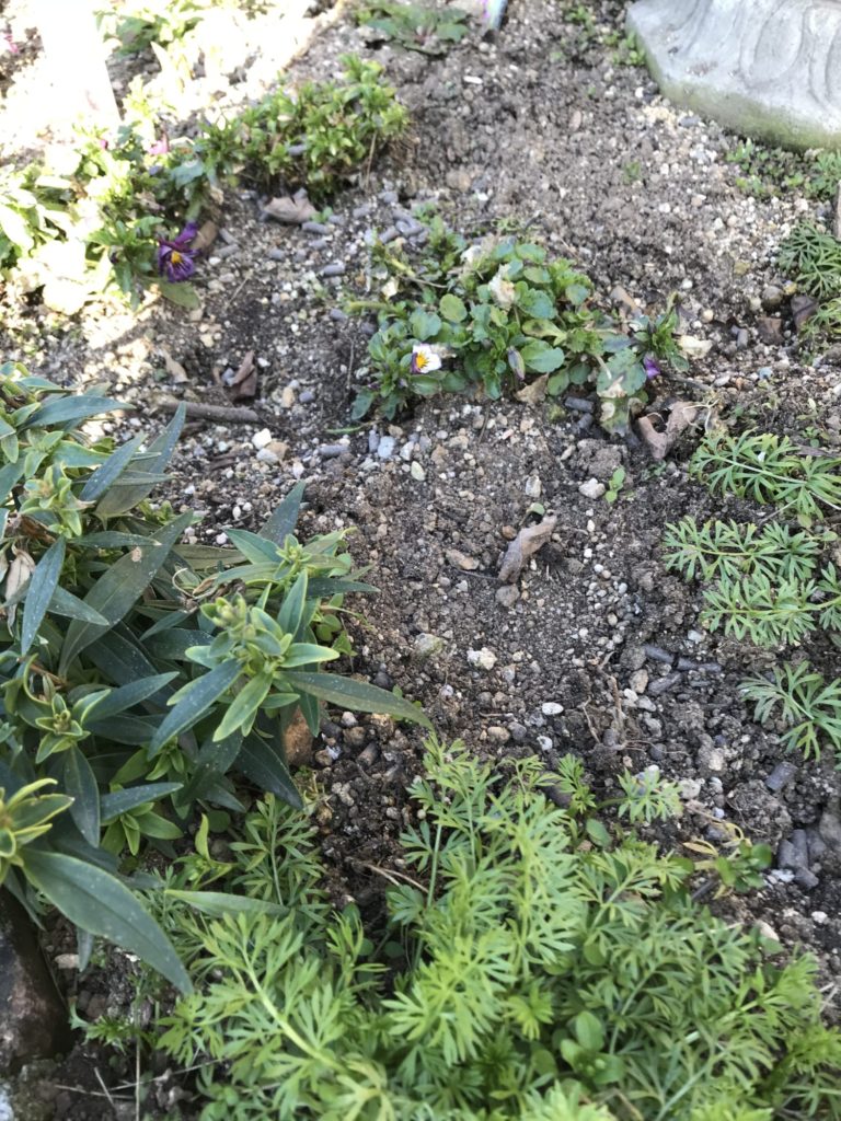 自宅の庭です。秋に植えたビオラが寒さに耐えれなかったのか、病気なのか、、。全く花がなく、、、。悲しい事です。鉢の寄せ植えを少し植え直したので、その花を、花壇に植え直しました。花がなくなったビオラたちは、娘の家の花壇にお引越し!元気になってね。